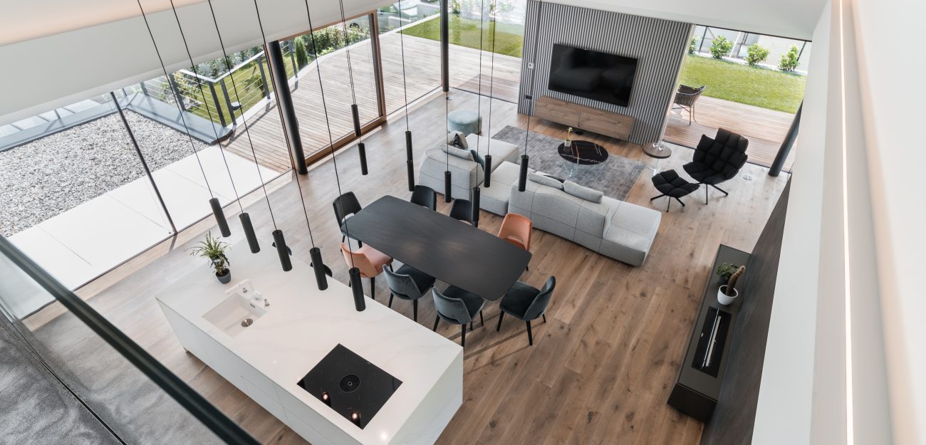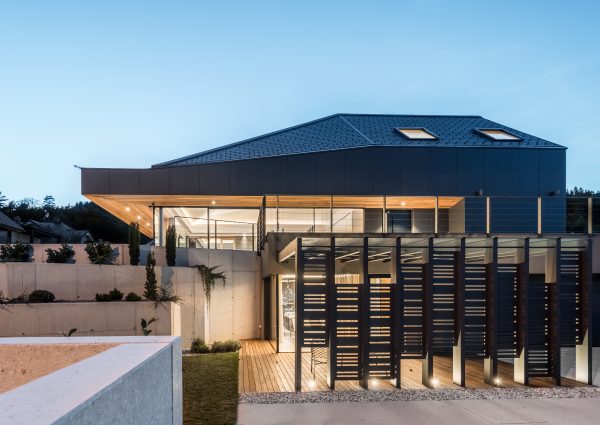 Moderno edificio privato con grandi pareti di vetro. (Foto: Jernej Lah)