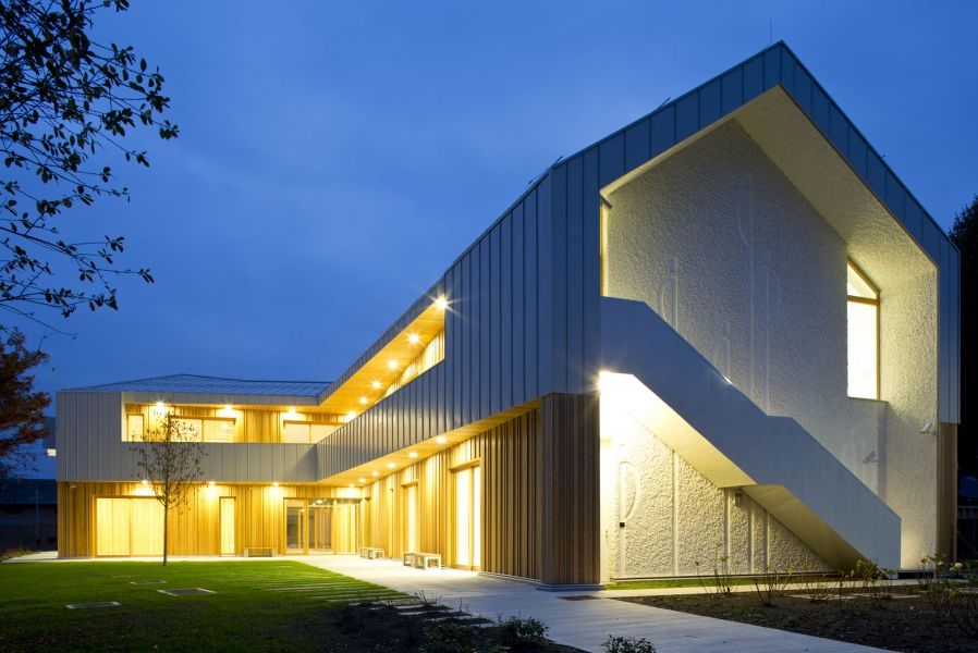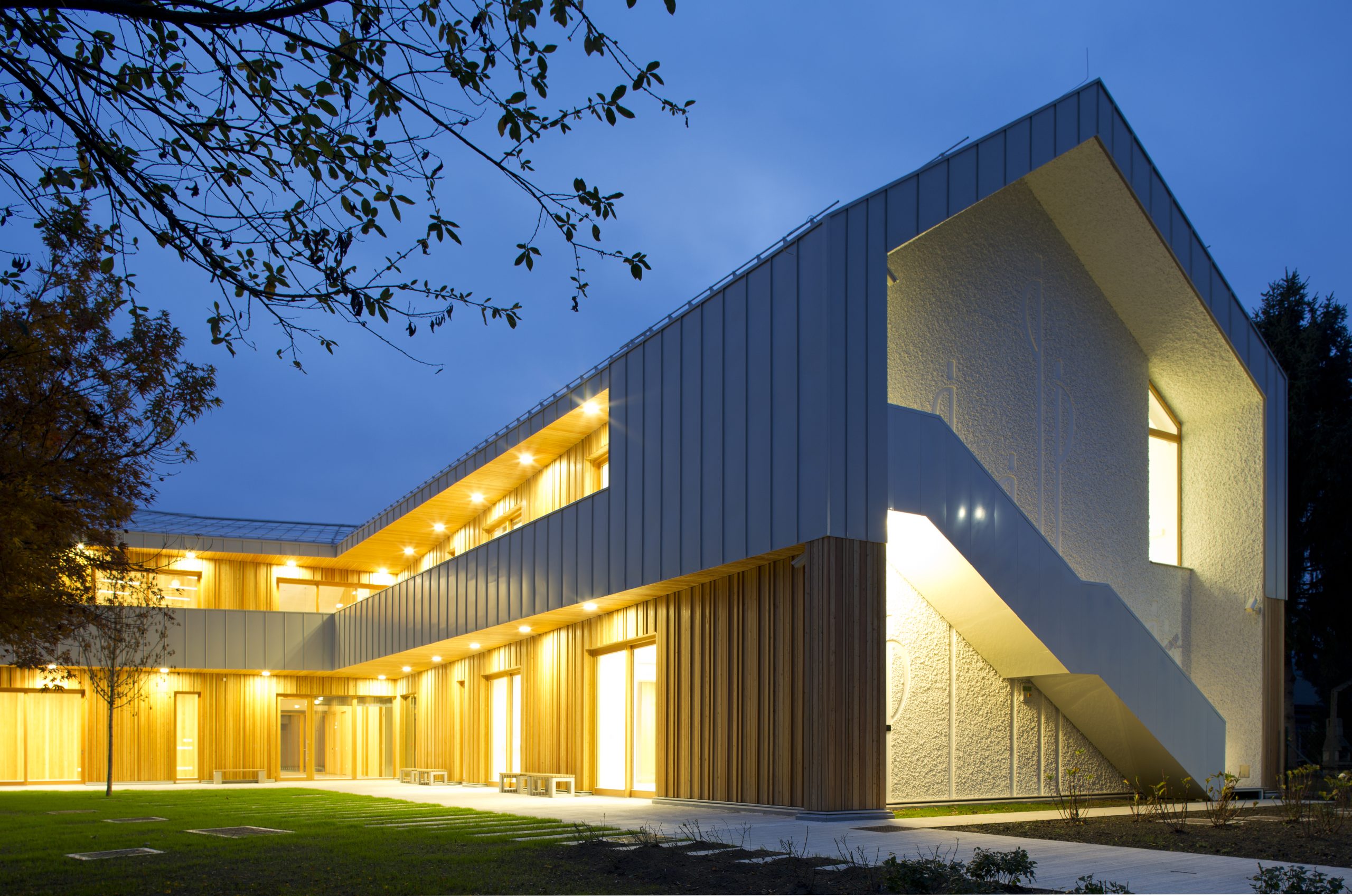 Il Varstveno delovni center INCE fornisce servizi di assistenza sociale di orientamento, cura e occupazione in condizioni speciali e assistenza istituzionale per persone con disabilità mentale moderata e grave. L’edificio si trova vicino a un ruscello su un terreno allungato. Il progetto segue la tipologia del nucleo del villaggio e l’organizzazione delle vecchie case coloniche, con una divisione in un’aia lungo la strada e un giardino privato vicino al ruscello. L’uso di elementi tipici dell’edilizia tradizionale slovena, il “gank” – balcone, legno, gronda e tetto a capanna, ammorbidisce le dimensioni dell’edificio e lo avvicina alla scala delle case circostanti. La forma variegata del tetto a capanna unisce l’edificio in un tutt’uno.